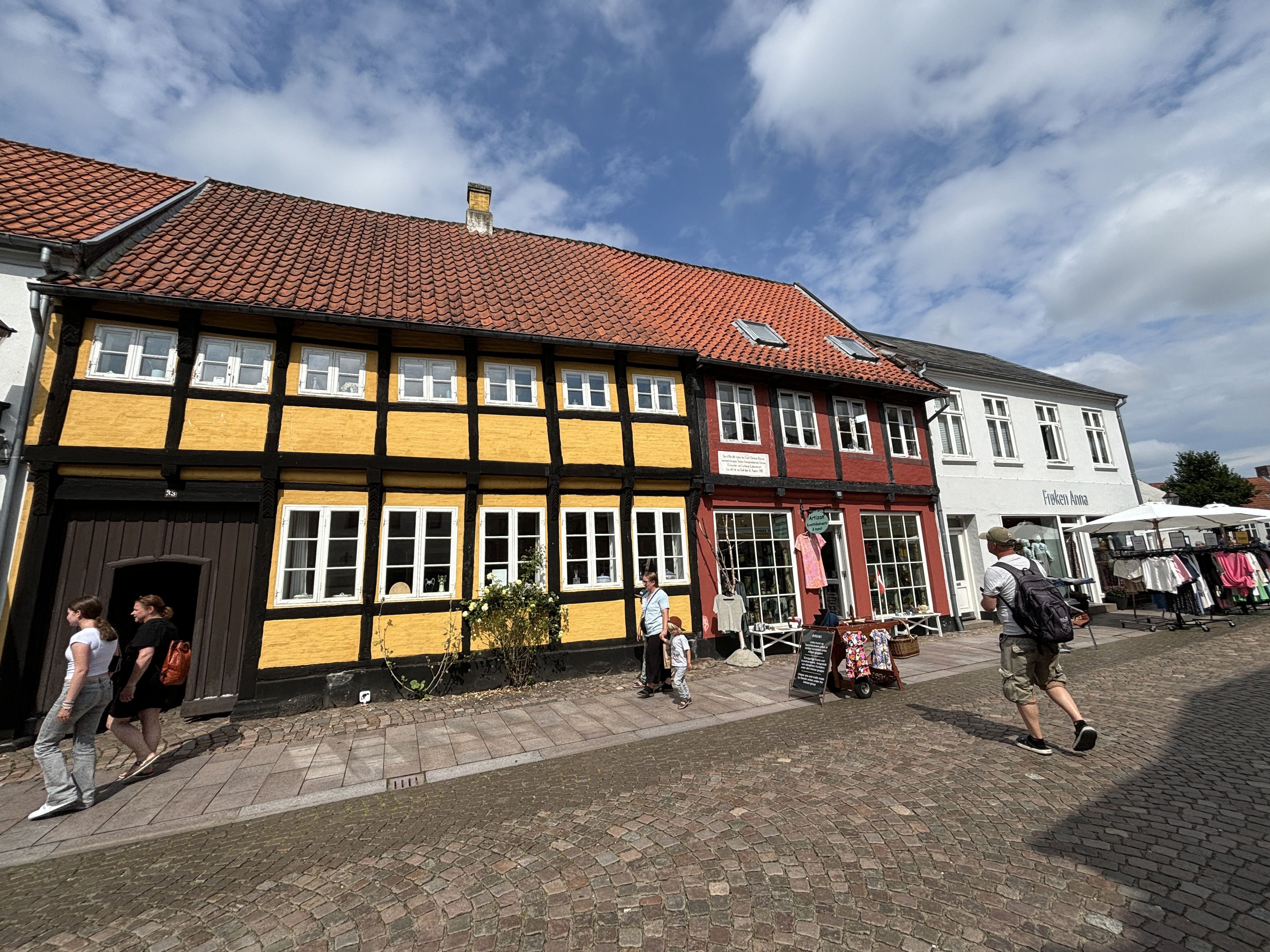 Solo hace falta adentrarse unos pasos dentro del casco antiguo de Dinamarca para darte cuenta de que estás haciendo un viaje en el tiempo: las casas con entramado de madera, la noria de madera dando vueltas en el río, las tiendas de artesanía, los estrechos callejones que encuentras entre las casas…