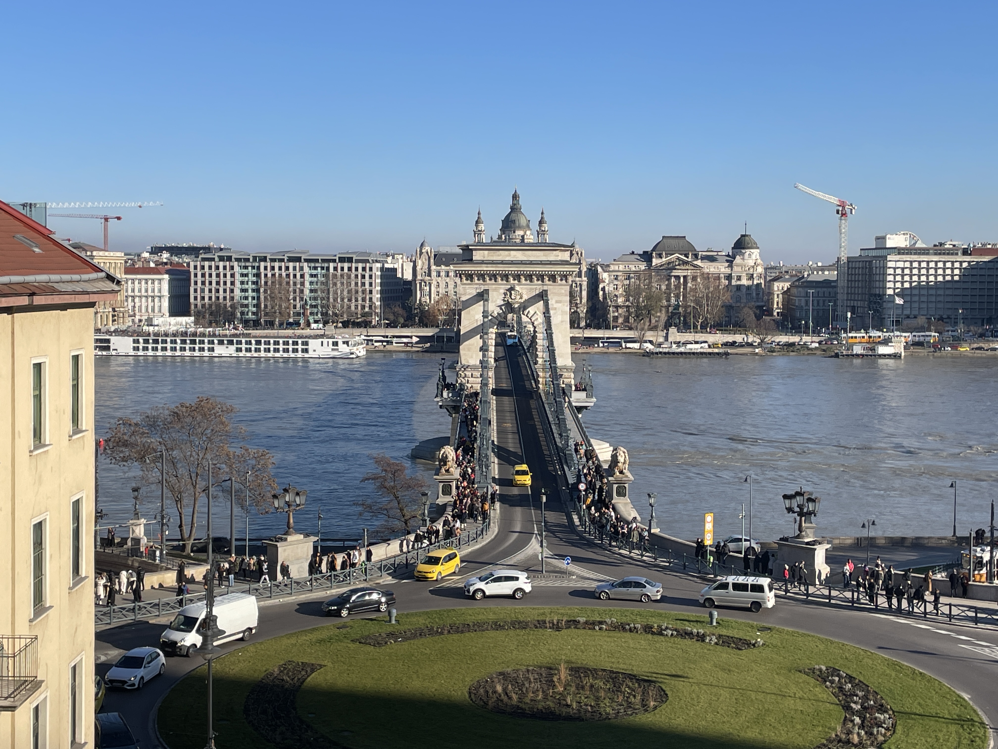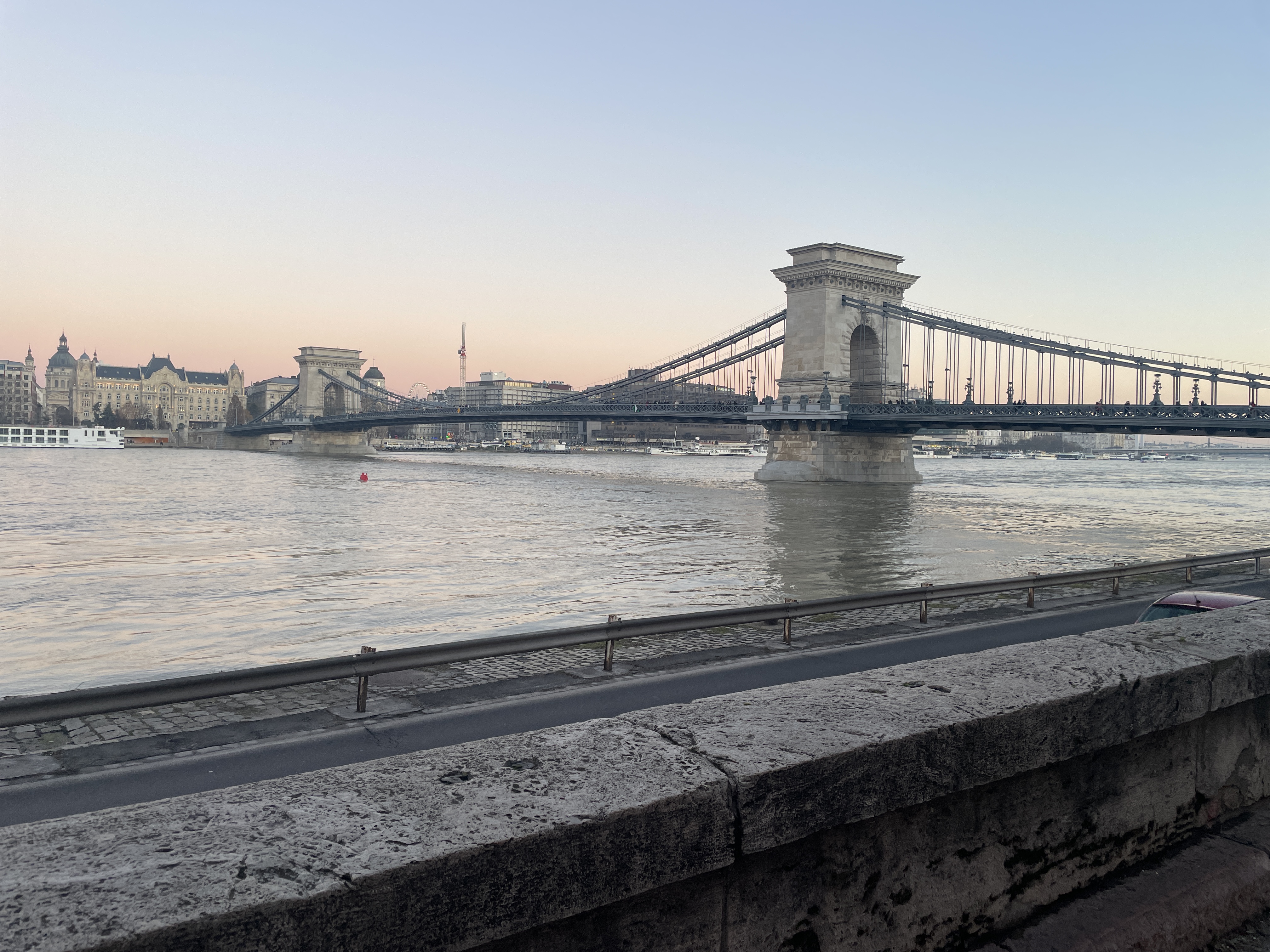 Desde allí nos dirigimos al Puente de las Cadenas, al que le hicimos cien fotos por lo menos. El puente tiene tráfico de vehículos, pero está bien separado de la zona de transeúntes y es seguro cruzarlo caminando.