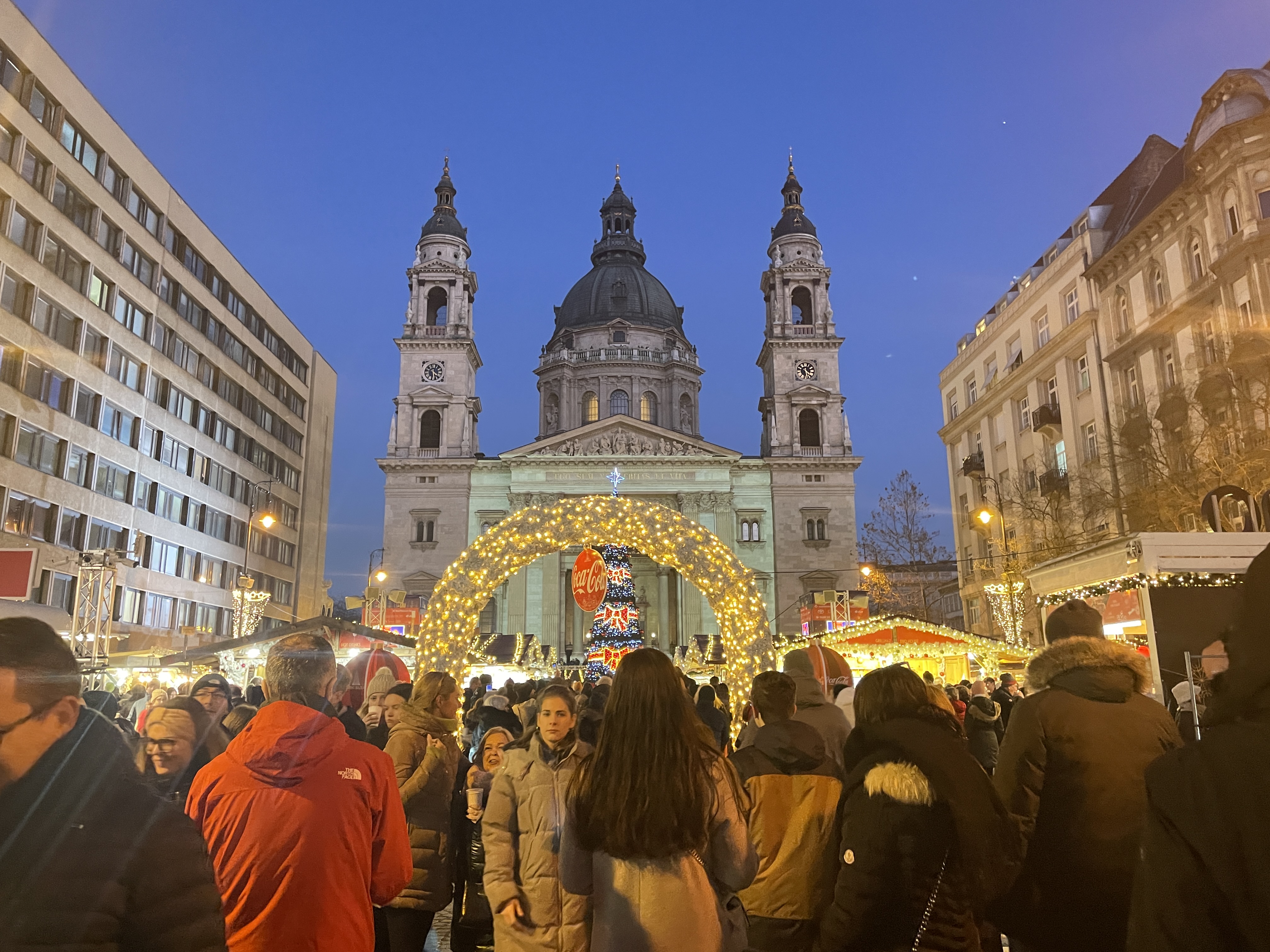 Comenzamos el día conociendo Pest. En primer lugar visitamos la Ópera, un edificio precioso que vale la pena visitar por dentro. Para ello, podéis comprar una visita guiada o adquirir la entrada desde aquí para uno de los espectáculos. Muy cerca se encuentra la Basílica de San Esteban, una espectacular iglesia frente a la que se monta un concurrido mercadillo navideño. Nosotros no entramos en la Basílica pero es posible visitarla.