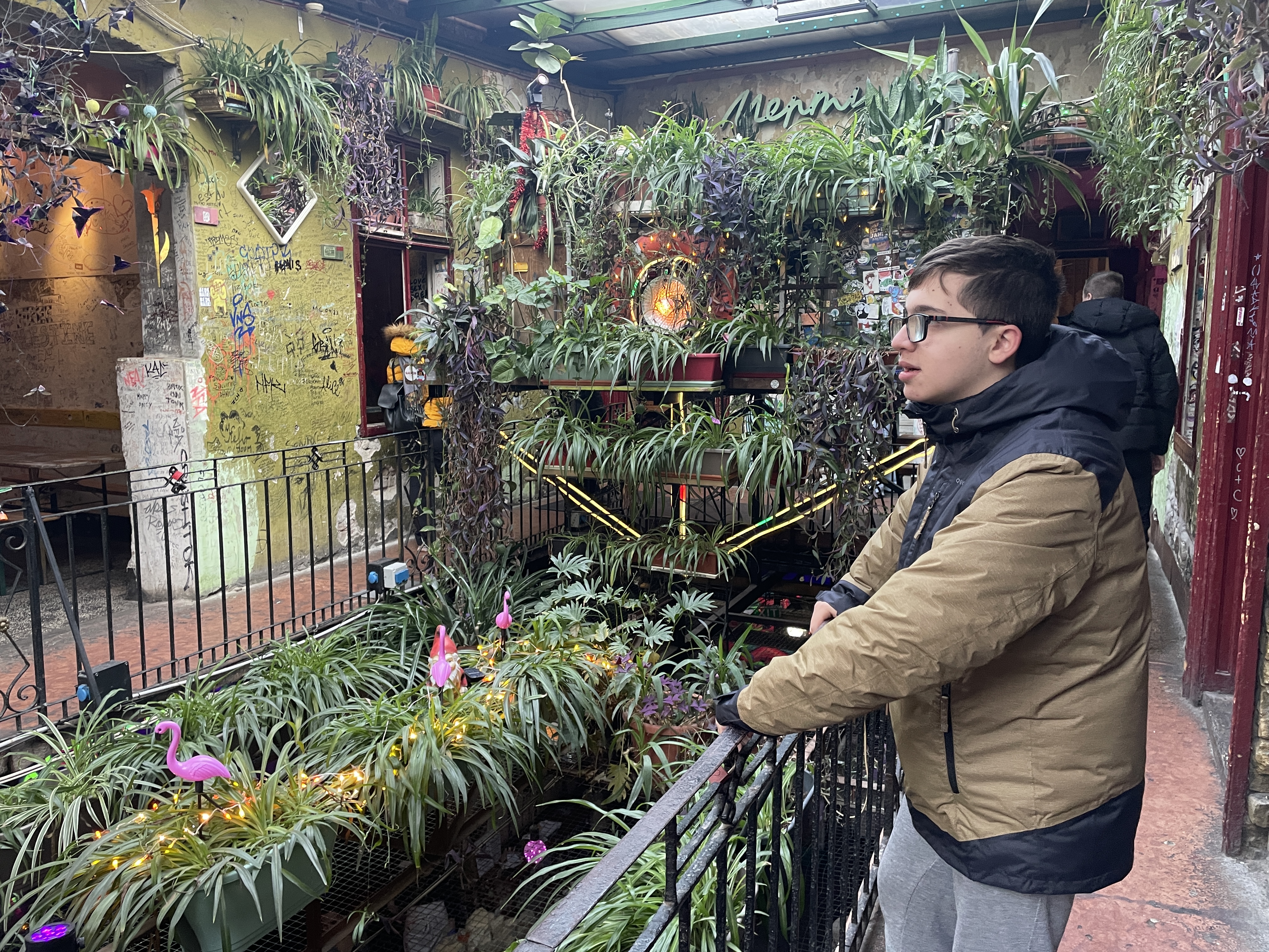 En primer lugar visitamos el ruin bar más conocido, el Szimpla Kert. Tal vez si viajas solo sea más interesante venir de noche, pero con los niños nosotros preferimos hacerlo por la mañana. Un ruin bar está construido en un edificio en ruinas y suele ofrecer comidas, cenas y copas, pero en este caso también había mercado de artesania y de productos locales. Justo al lado tenéis una zona con food trucks. Y muy cerquita se encuentra la Gran Sinagoga de Budapest. Solo la visitamos por fuera, pero es impresionante ya con eso, porque es la sinagoga más grande de Europa y la segunda del mundo. Si queréis verla, la entrada individual son 10800 HUF(unos 28€) y la de niño de 6 a 12 años 4000 HUF (algo más de 10€).