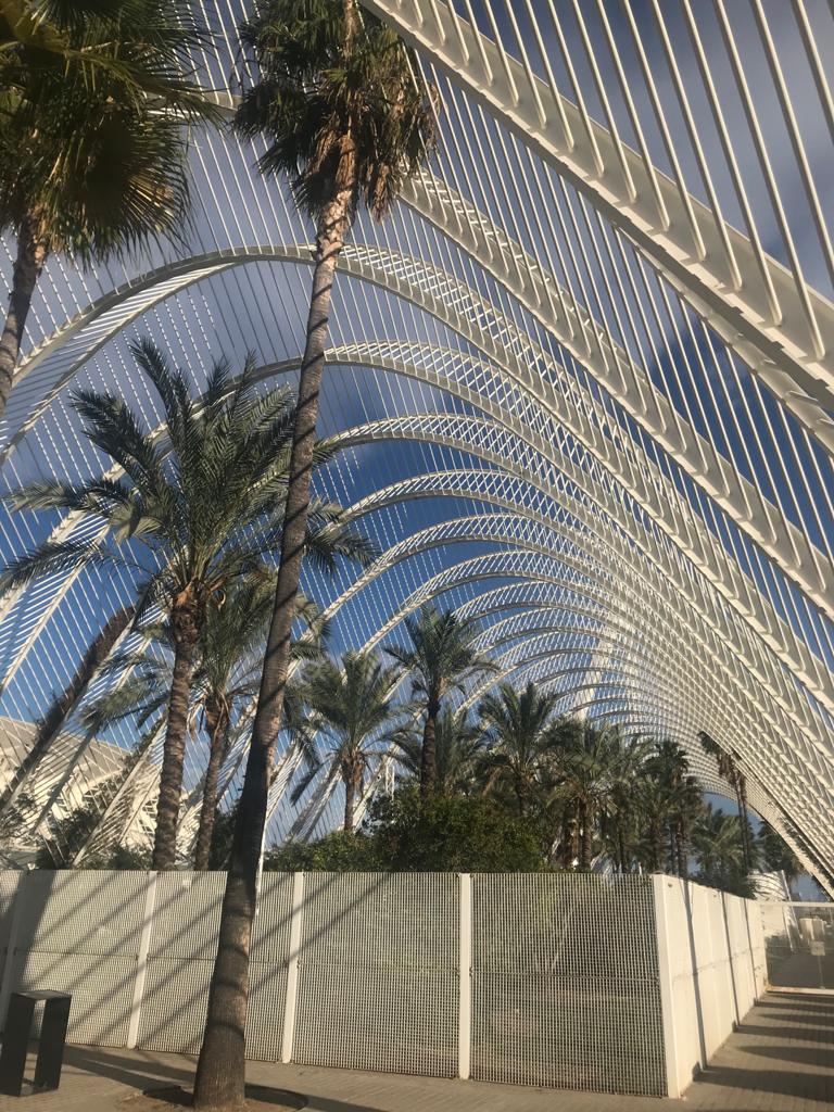 La verdad es que no es el mejor medio de transporte para llegar, porque las paradas se encuentran a un paseo. Si no os importa caminar unos 20 minutos, desde la parada de Alameda podéis atravesar el Jardín del Turia hasta llegar al Palau de les Arts, que es el primero de los edificios que encontramos.